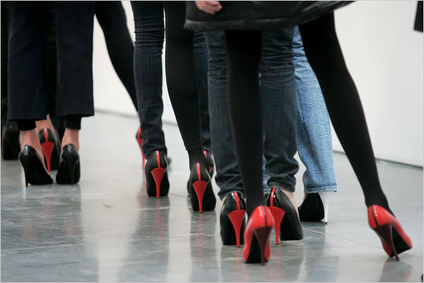 I love Love LOVE how the skinny jeans and little red stiletto heels create a seamless vertical line on these leggy models at New York Fashion Week!