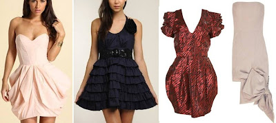 Left to right: ASOS Parachute Dress, $82.76, www.asos.com; Tiered Halter Dress, $34, www.forever21.com; Animal Puff Dress, $100, www.topshop.com; Gardenia strapless wool dress by Azzaro, $2445, www.net-a-porter.com